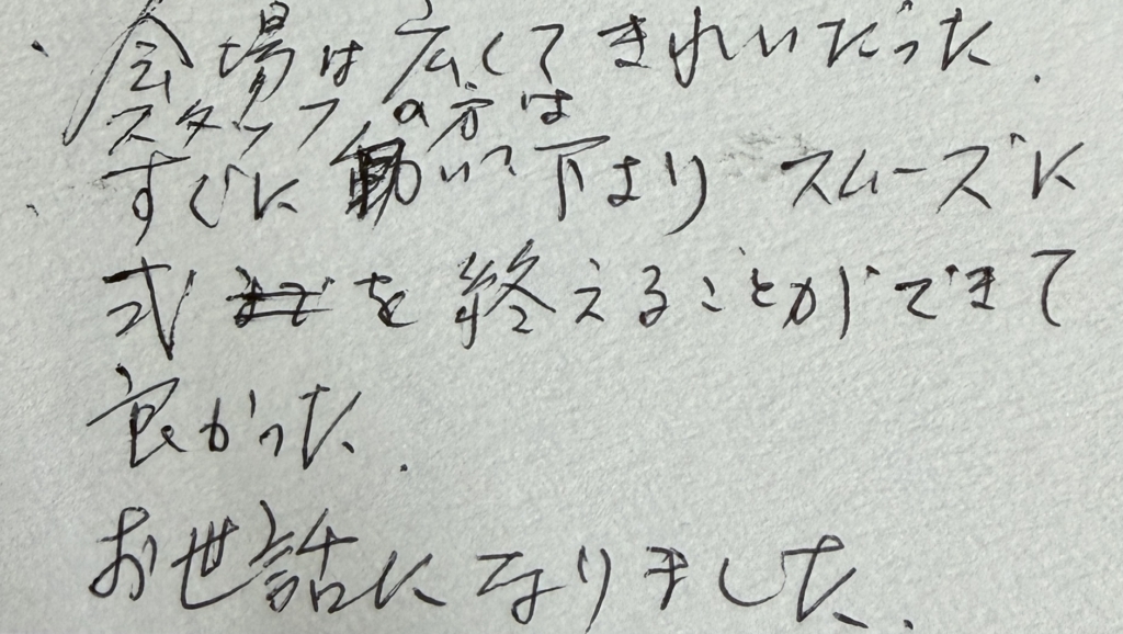スタッフの方はすぐに動いて下さりスムーズに式を終えることができて良かった。